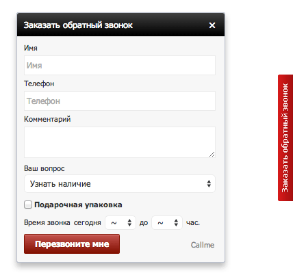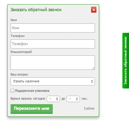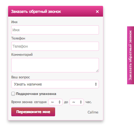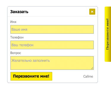 Давайте посмотрим, как работает Callme. Нажмите на любую из ссылок ниже. Кликайте на любую ссылку, чтобы показать форму заказа. Это ссылка с атрибутом, который нужно указать в поле data-cme. Кликайте на любую из них повторно, чтобы форма скрылась.
